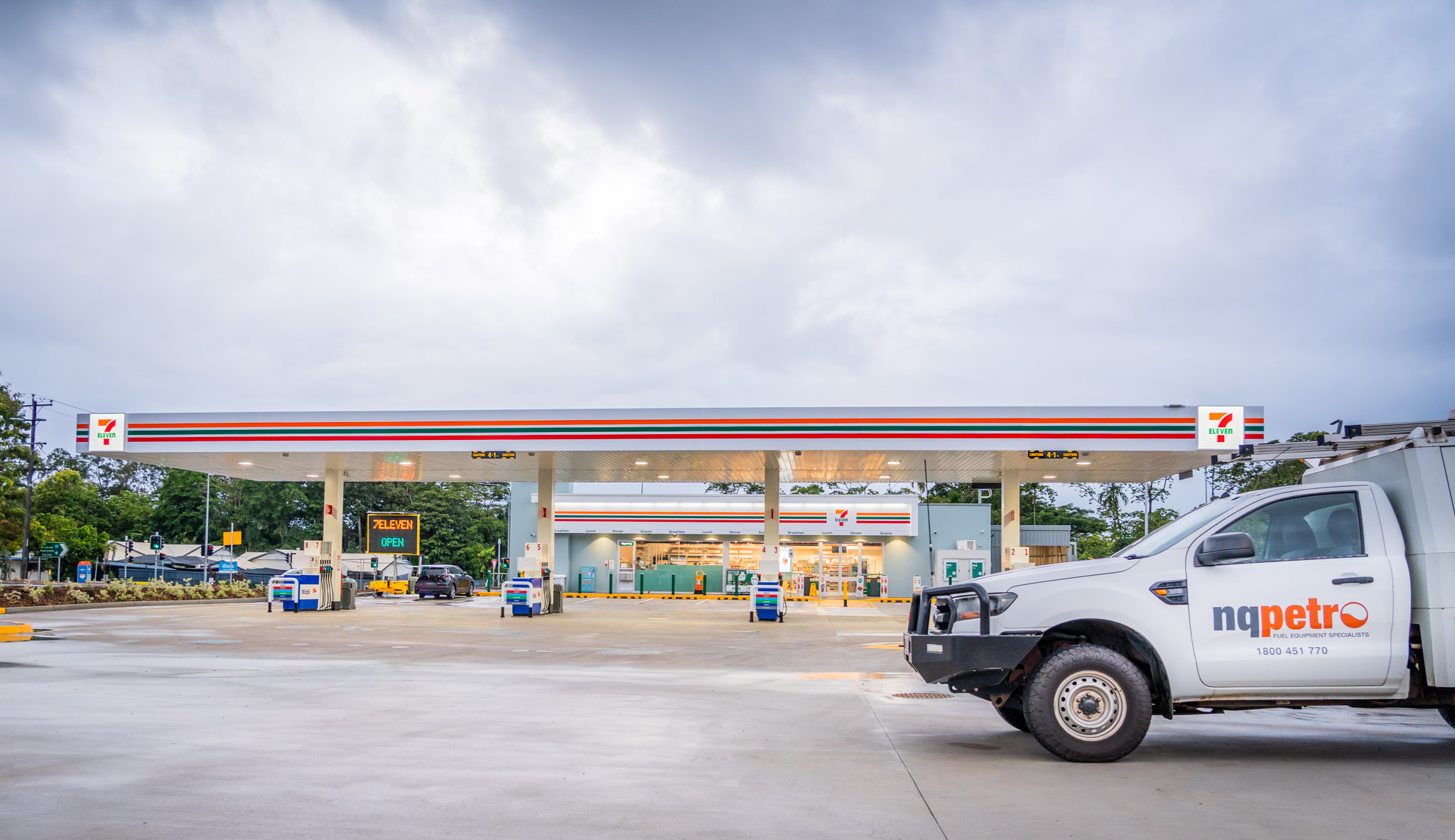 Nqpetro has successfully delivered the 7-Eleven Smithfield Service Station, a new-to-industry greenfield fuel site requiring complex dewatering works and underground fuel storage tank installation.