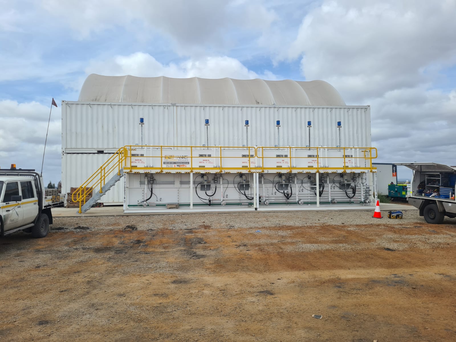 The Grande 75’s split compartments allow for the storage of different types of oils and coolants, which can be tailored to the specific requirements of the mine’s equipment. This project underscores the adaptability and reliability of Nqpetro’s lube tanks. Our innovative solutions are designed to be easily modified to meet various capacity requirements, making them ideal for diverse industrial applications. The ability to customise our lube systems ensures that clients receive a solution perfectly suited to their operational needs, enhancing both convenience and reliability.
